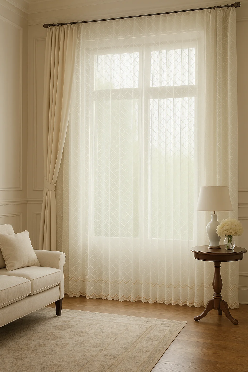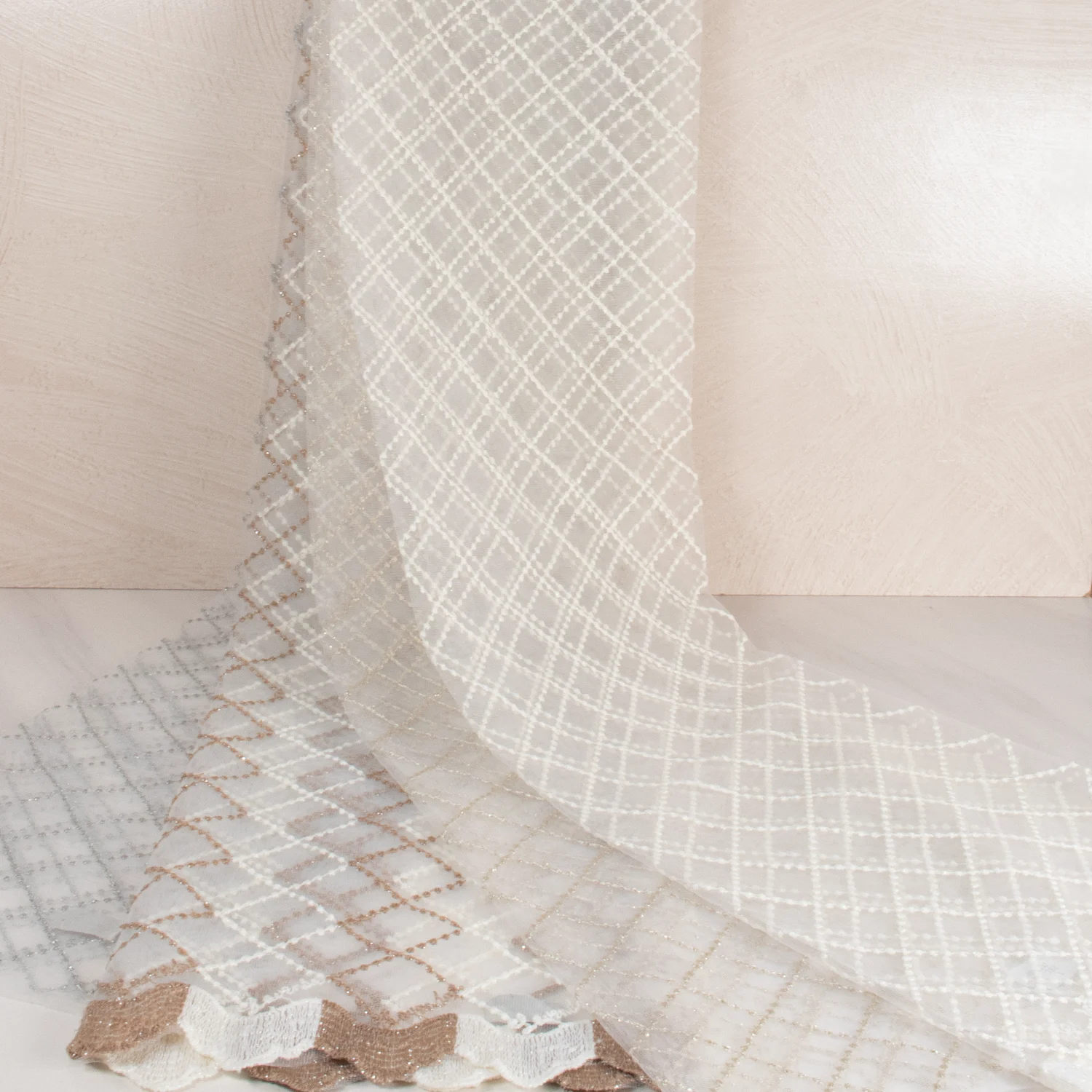 پارچه پردهای تور گلدوزیشده با حاشیه