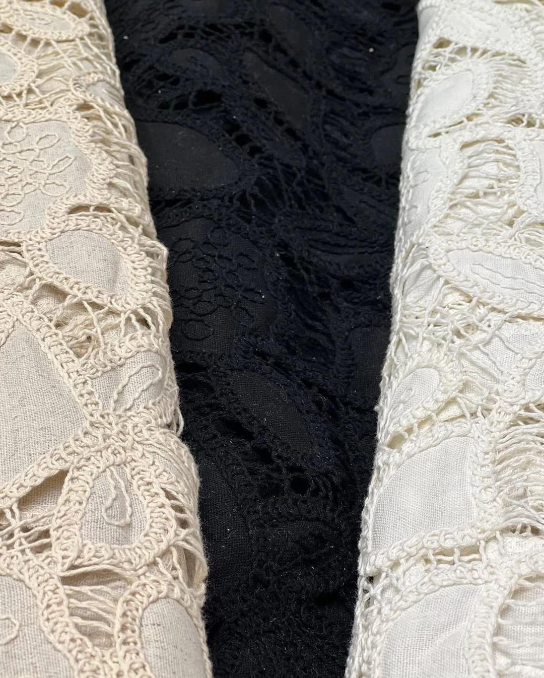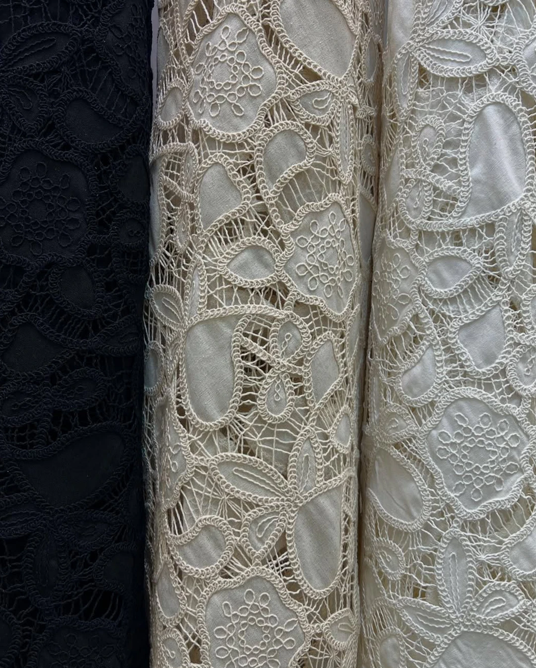پارچه لباسی لینن قلاب بافی یک پارچه با کیفیت از جنس لینن است که با استفاده از تکنیک‌های قلاب بافی، طرح‌های مدرن و جدید را به ارمغان می‌آورد. این محصول در رنگ‌های مشکی، شیری و سفید عرضه می‌شود و به صورت عمده فروشی و طاقه در بازار تهران فروش می‌شود. طراحان تولیدی لباس و مزونهای معتبر، این پارچه را برای دوخت پوشاک زنانه، دخترانه، لباس رسمی، مهمونی و مجلسی به کار می‌برند. همچنین خانم ها به دلیل جذابیت مد و نوآوری این محصول، از آن استقبال می‌کنند.