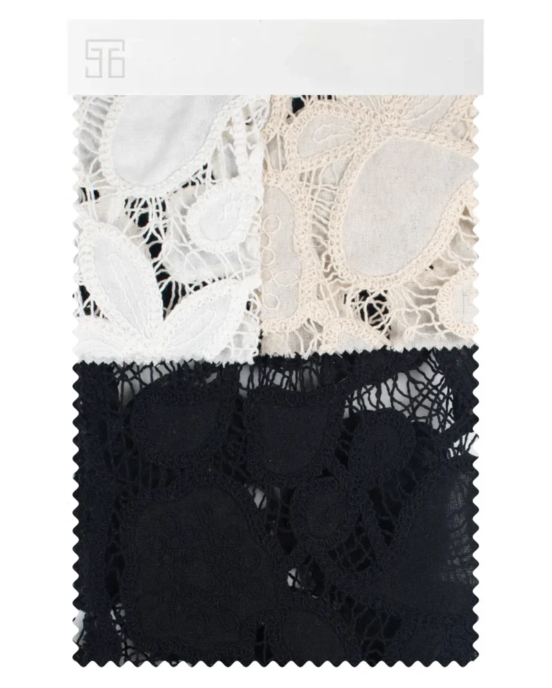 رنگ‌های مشکی، شیری و سفید این پارچه امکان استفاده در طرح‌های مختلف تولیدی لباس، مزون و فروش پوشاک زنانه، دخترانه، لباس رسمی، مهمونی و مجلسی را فراهم می‌کند.