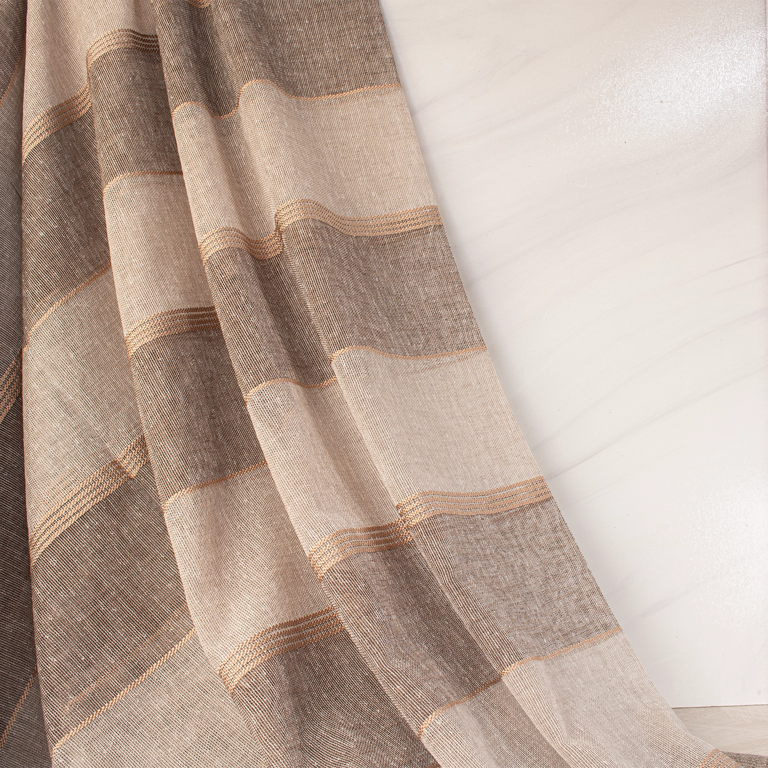 این پارچه پرده تور راهراه نخ ابریشمی ترک با طراحی دقیق و بافت باکیفیت، جلوهای لطیف و امروزی به دکوراسیون میدهد. طراحان این مدل، زمینهای دورنگ را با خطوط عمودی از نخهای ابریشمی ترکیب کردهاند تا نمایی شیک، ساده و چشمنواز ایجاد کنند.
