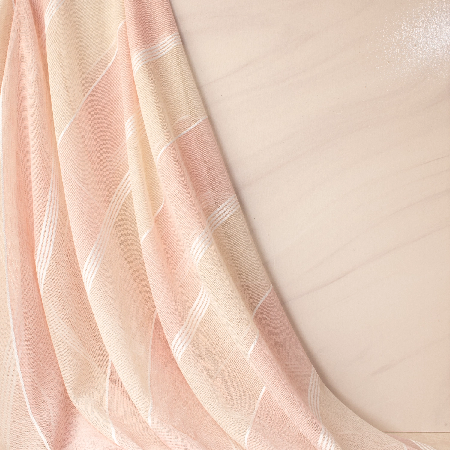 بافت ریز و یکدست تور در کنار نخهای ابریشمی، تعادلی زیبا میان سادگی و ظرافت ایجاد میکند. این ترکیب بهراحتی با سبکهای مینیمال، مدرن و کلاسیک هماهنگ میشود و فضایی آرام و دلنشین میسازد.